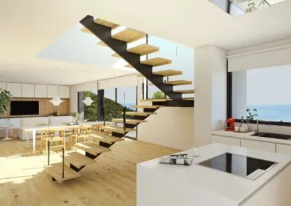 Die Villa vereint Design, Effizienz und Qualität. Das Design dieses Hauses wurde unter Berücksichtigung der Besonderheiten des Grundstücks entwickelt, um die Meerblicke bestmöglich zu nutzen!