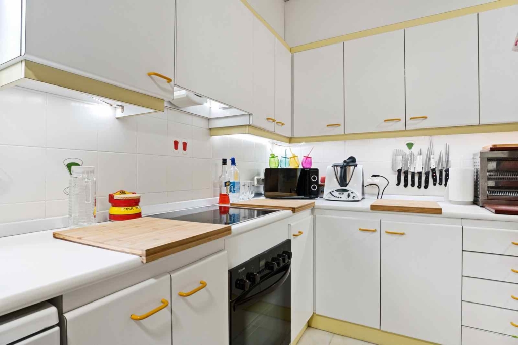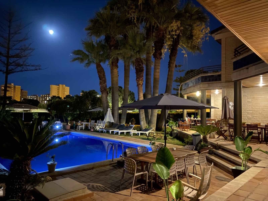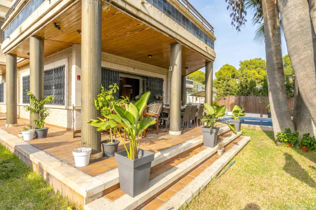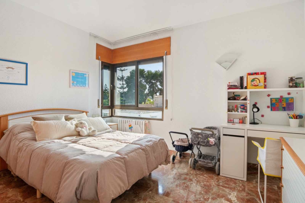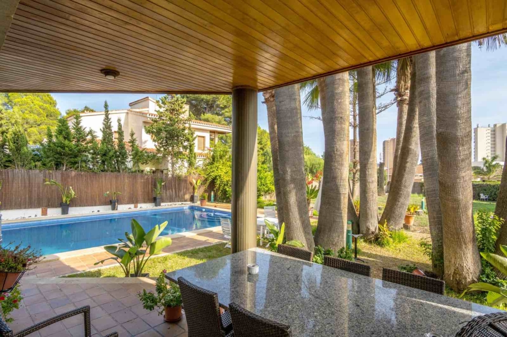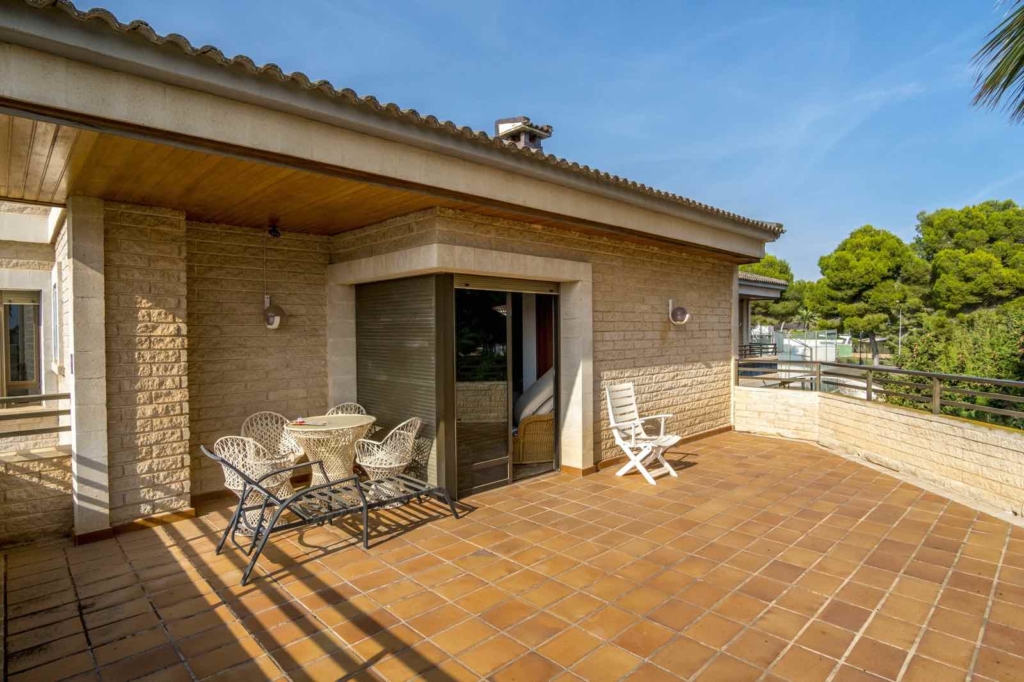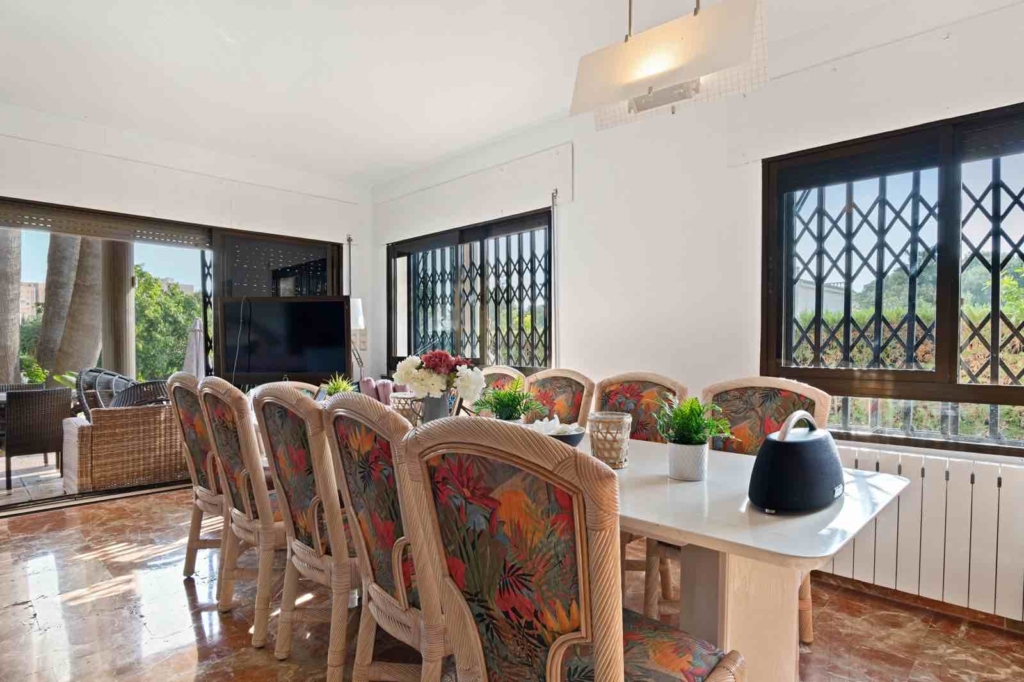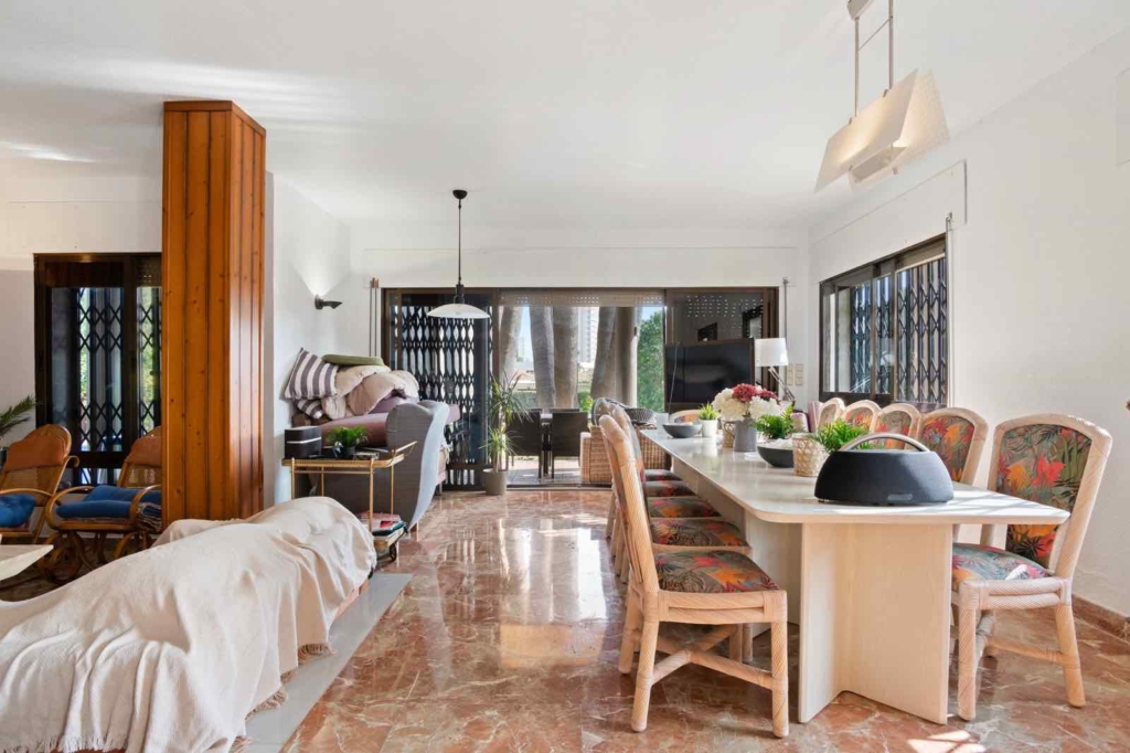 Los interiores de la villa son amplios, luminosos y abiertos, donde la cocina, la sala de estar y el comedor se combinan en un solo espacio con salida al patio y a la gran piscina. Los acristalamientos de esta casa son una excelente manera de unir la vida interior con el exterior, teniendo la posibilidad de disfrutar de la hermosa luz mediterránea en cualquier rincón de la casa mientras cocinas, lees en el sofá o trabajas en tu computadora portátil.