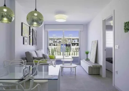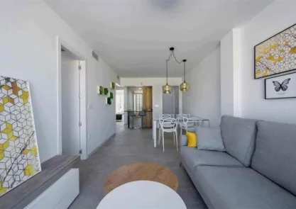 Każdy apartament ma otwarty układ, który łączy w pełni wyposażoną kuchnię z jasnym i przestronnym salonem, tworząc idealne miejsce do relaksu lub spotkań towarzyskich. Każde mieszkanie oferuje dwie eleganckie łazienki, w tym jedną en suite w głównej sypialni, zapewniając dodatkowy komfort. Zarówno salon, jak i sypialnie mają bezpośredni dostęp do dużego tarasu, idealnego do korzystania z klimatu śródziemnomorskiego.