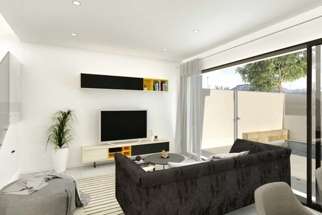 Все виллы построены на одном уровне в современном стиле. Они состоят из 3 просторных спален с электрическими жалюзями, 2 полностью оборудованных ванных комнат, прачечной, полностью оборудованной кухни открытой планировки и уютной гостиной.