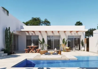 Все виллы построены на одном уровне в современном стиле. Они состоят из 3 просторных спален с электрическими жалюзями, 2 полностью оборудованных ванных комнат, прачечной, полностью оборудованной кухни открытой планировки и уютной гостиной.