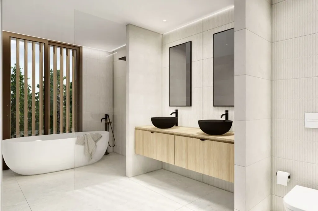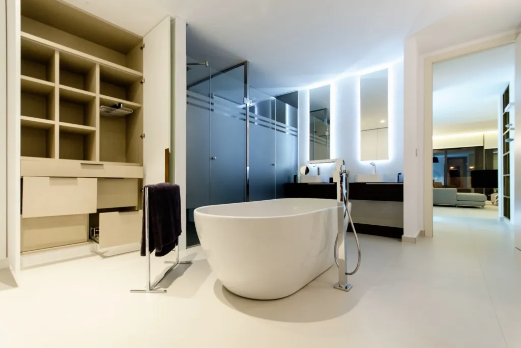 Снаружи: открытая терраса площадью 70 м2, частный бассейн свободной формы площадью 45 м2 с туалетом и душем на открытом воздухе.