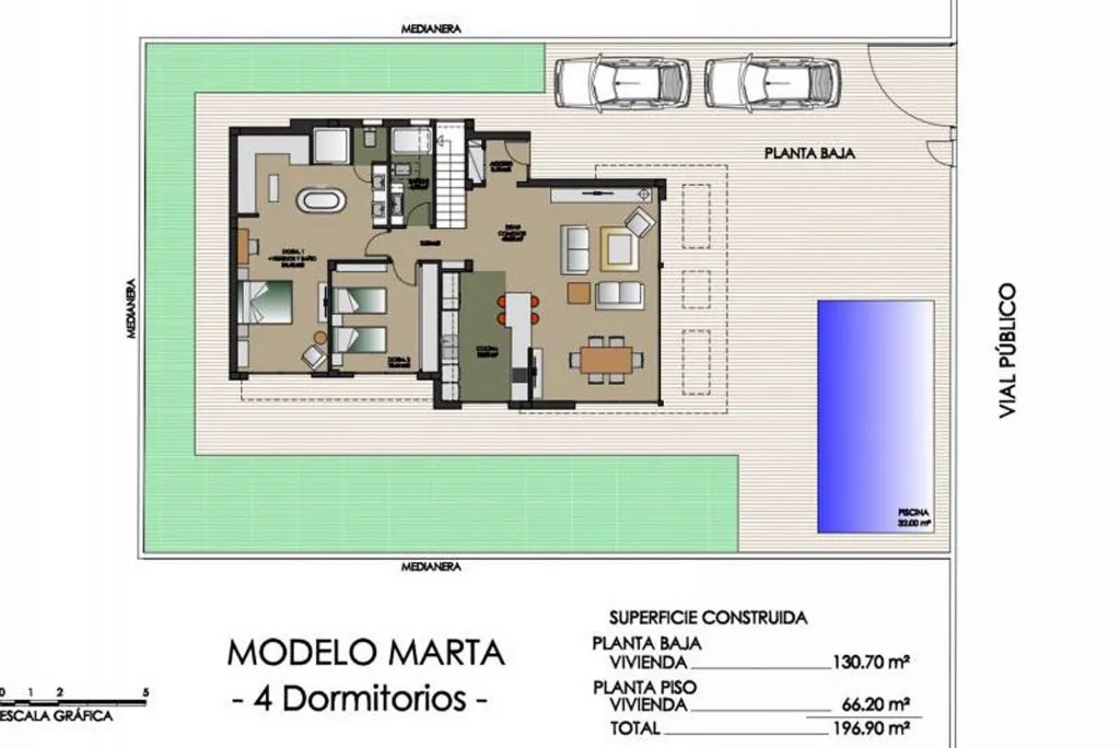 Это вилла высшего качества, построенная по высоким стандартам с прекрасной отделкой и множеством деталей, таких как полы с подогревом, потолки высотой 2,95 в гостиной и кухне, межкомнатные двери от пола до потолка и прекрасно отделанные шкафы во всех 4 спальнях.