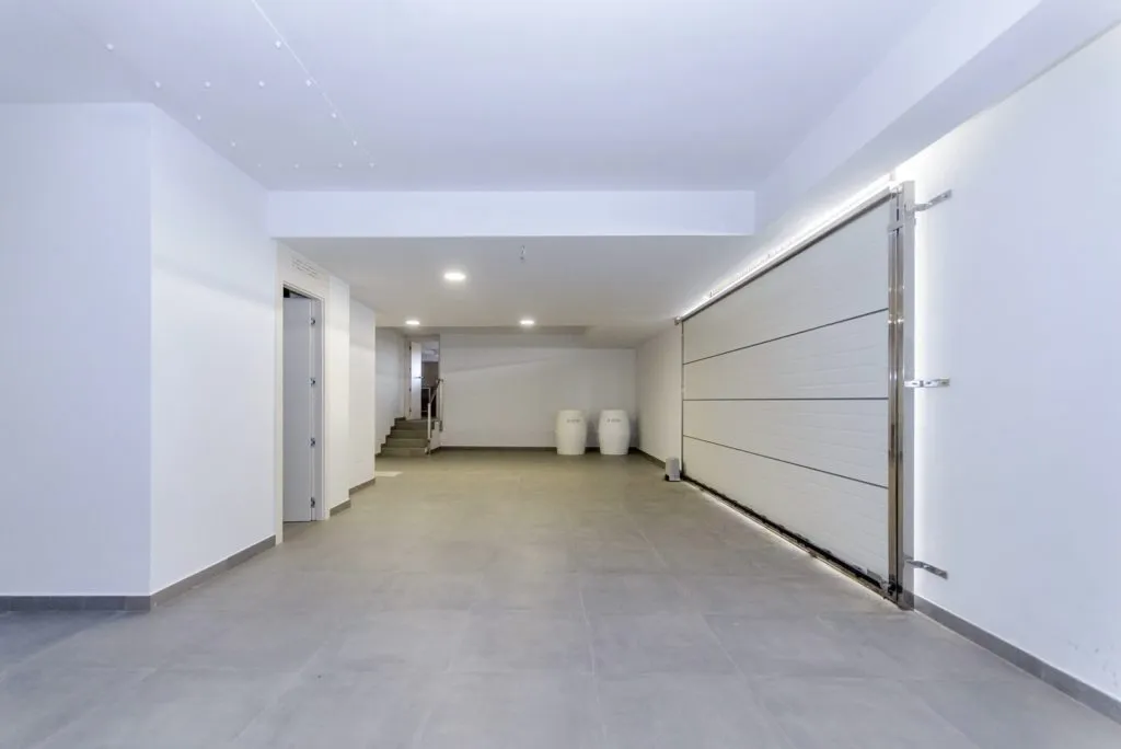 Автоматические гаражные ворота, пешеходные и дорожные ворота и вертикальный металлический забор.