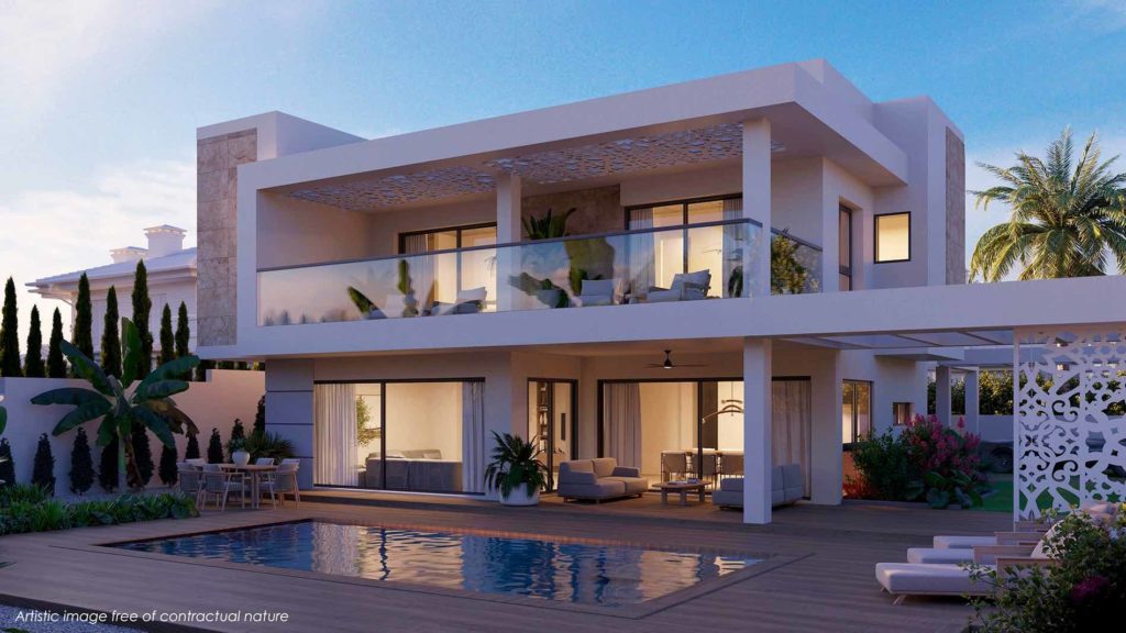 Дом построен по индивидуальному проекту, где учтены все пожелания владельцев. Фасад дома выполнен из облицовочного кирпича «клинкер», чем выделяется на фоне остальных домов, построенных в средиземноморском стиле. Черепица на крыше переливается на солнце двумя оттенками цвета «коньяк». Кованые ограждения выполнены с эксклюзивной техникой покраски.