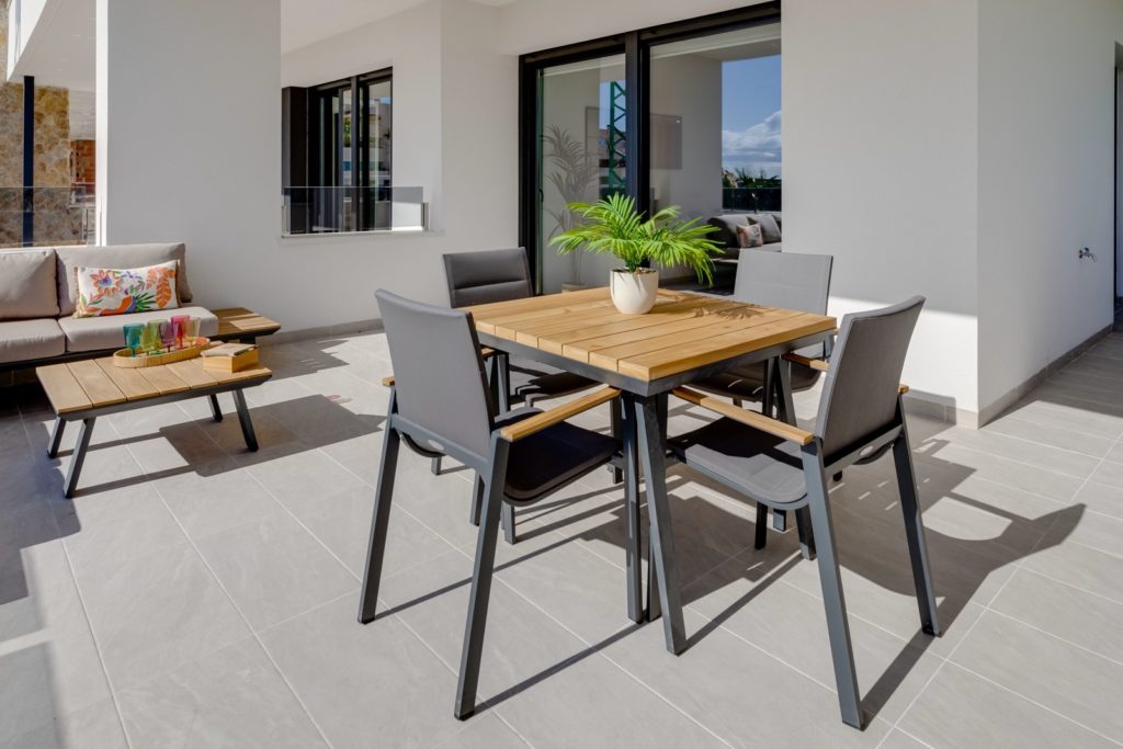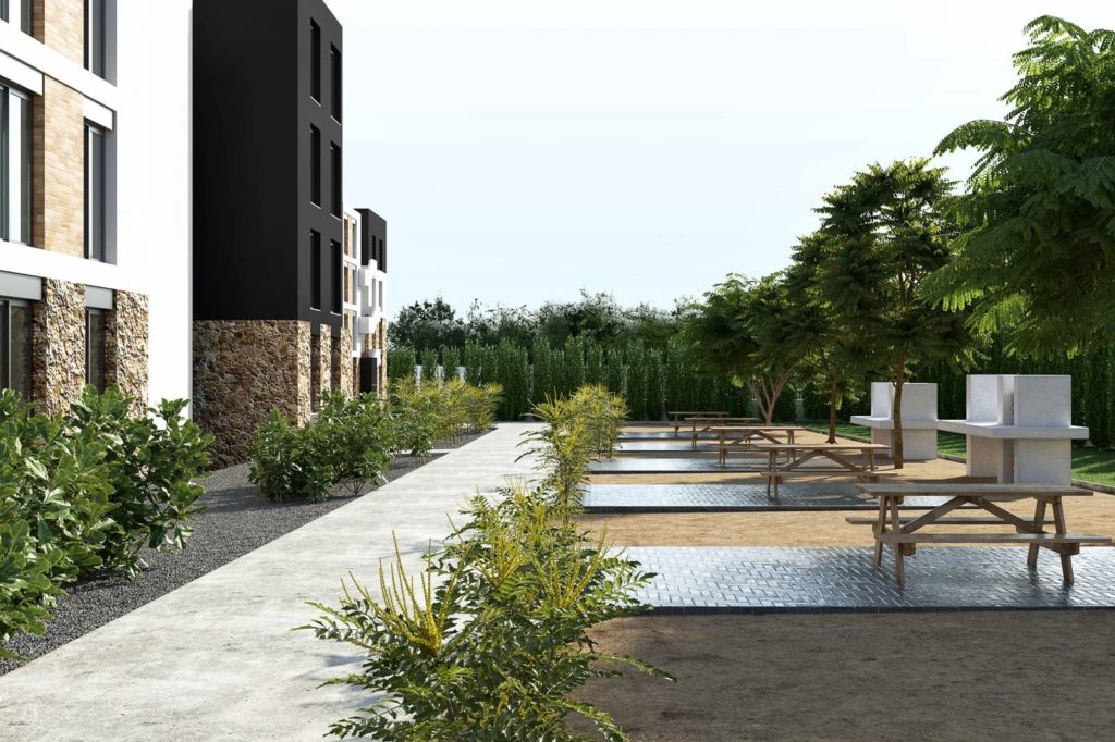 Все апартаменты имеют большие террасы (верхние имеют частный солярий), где вы можете наслаждаться потрясающим видом на природный парк и море.