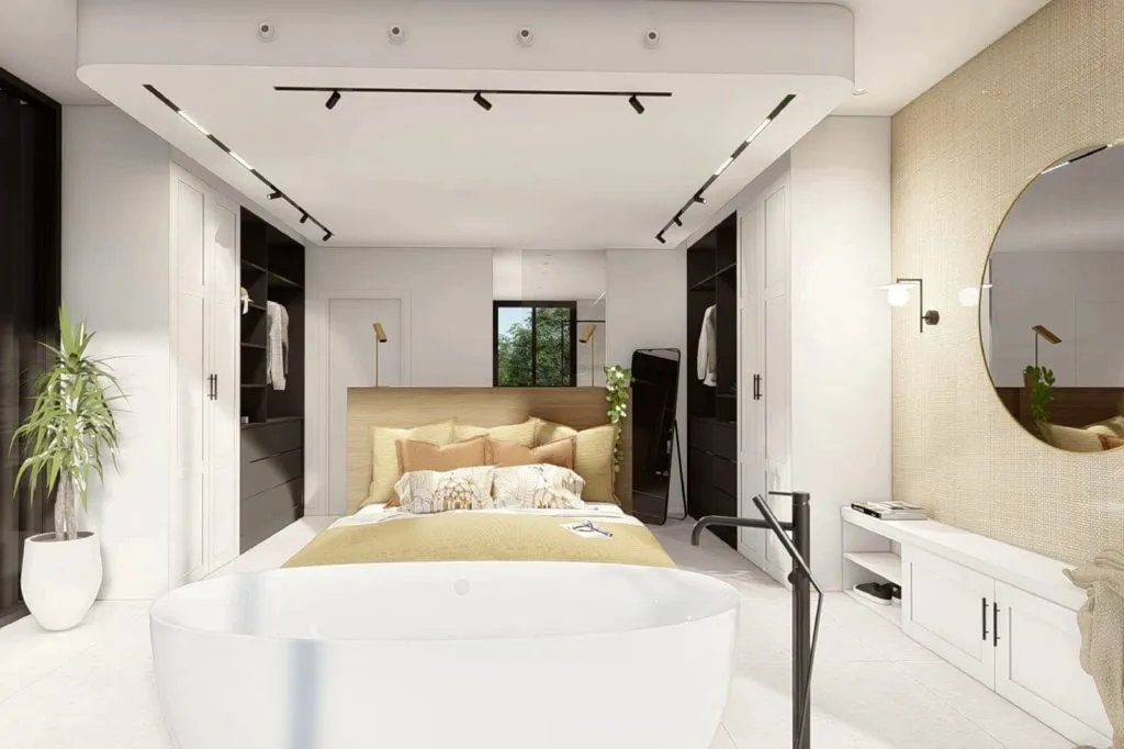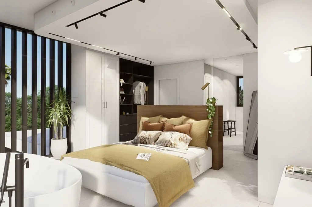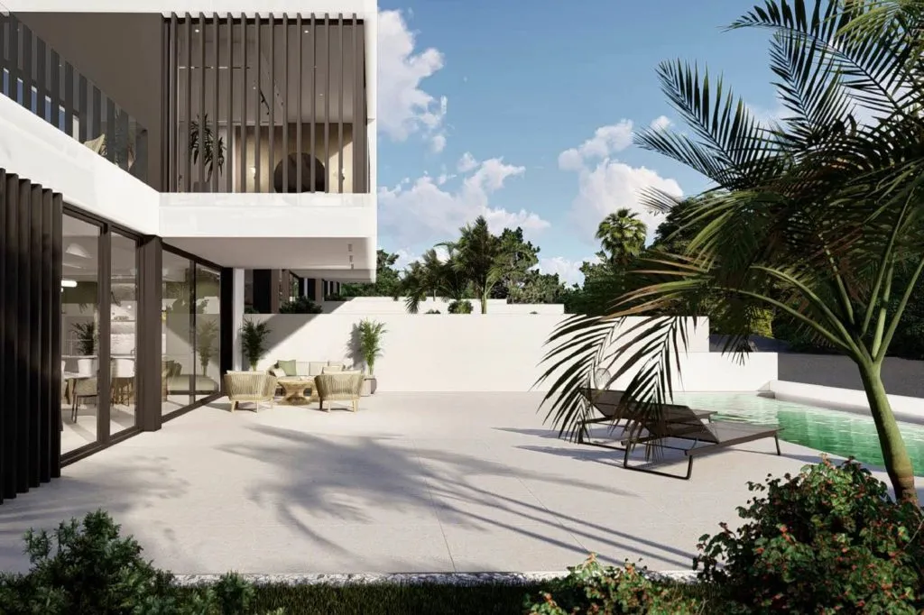 Внешнее пространство также впечатляет — огромный бассейн с переливом и джакузи общей площадью 38 м2, душ и ухоженный сад с соснами создадут атмосферу спокойствия и уюта. Виллы находятся в пешей доступности от всех необходимых услуг для жизни услуг, включая магазины, банки и рестораны.