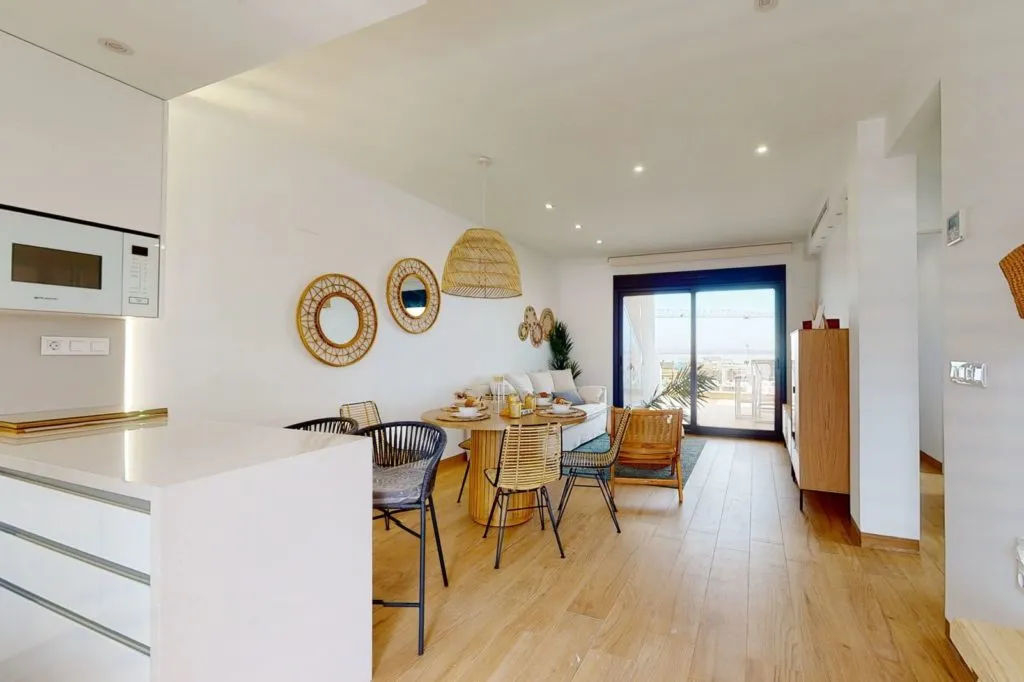 Среди сотен объектов недвижимости на продажу на юге Коста Бланки, это бунгало особенно привлечет ваше внимание. Это современные бунгало открытого дизайна с 3 спальнями, 2 ванными комнатами, кухней американского типа с островом и большой гостиной с обеденной зоной.