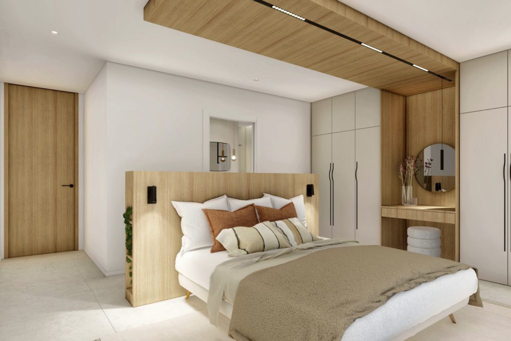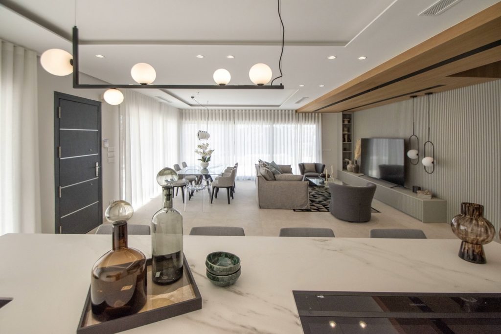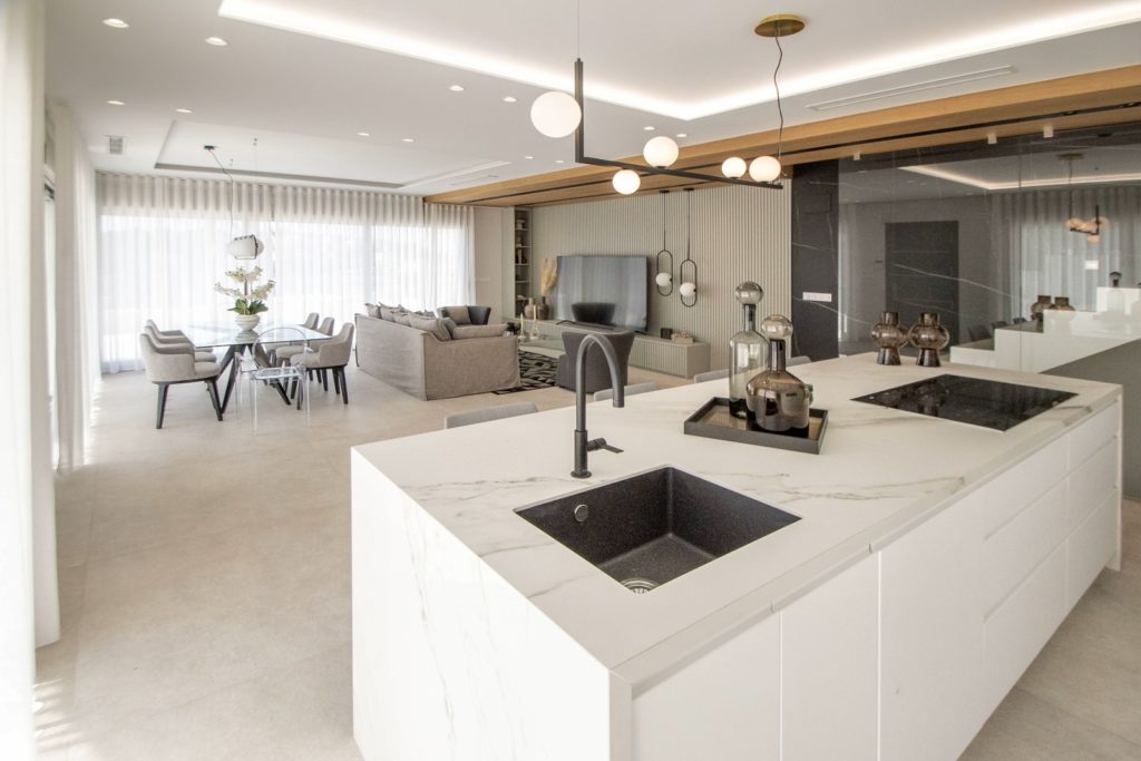 Вилла полностью оборудована и отделана материалами самого высокого качества. Расположена на уединенном участке площадью от 555 м2 до 686 м2 с садом и частным бассейном. Открытая кухня с островом оснащена всей необходимой бытовой техникой.