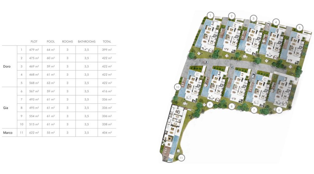 Роскошные виллы, смежные дома, апартаменты и земельные участки образуют небольшие поселки с неповторимым обликом, который мог возникнуть только в Средиземноморье.