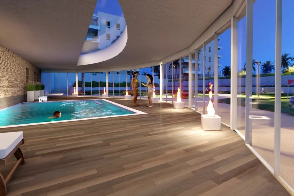 Изюминкой комплекса «SeaGardens» является – тренажерный зал с панорамными видами на территорию комплекса. В тренажерном зале располагается сауна, 2 бассейна и джакузи для расслабления после тренировки. В стоимость каждого апартамента входит 1 парковочное место и кладовая комната.