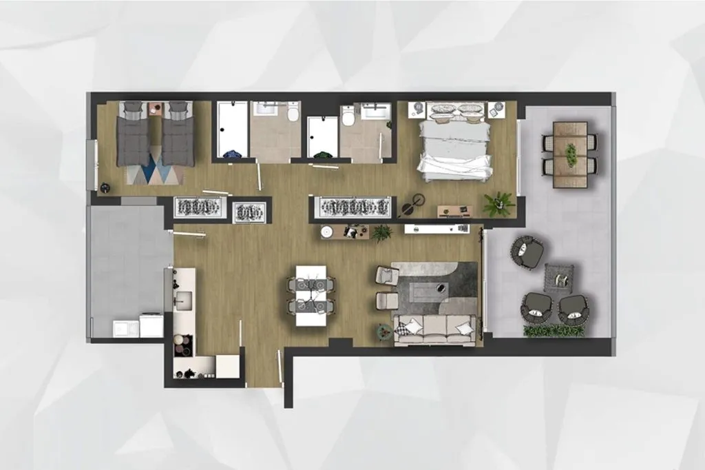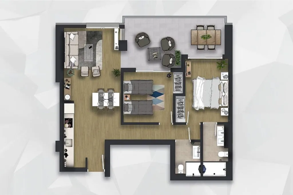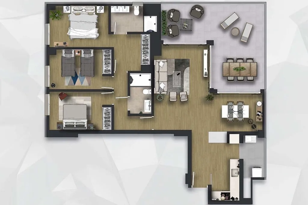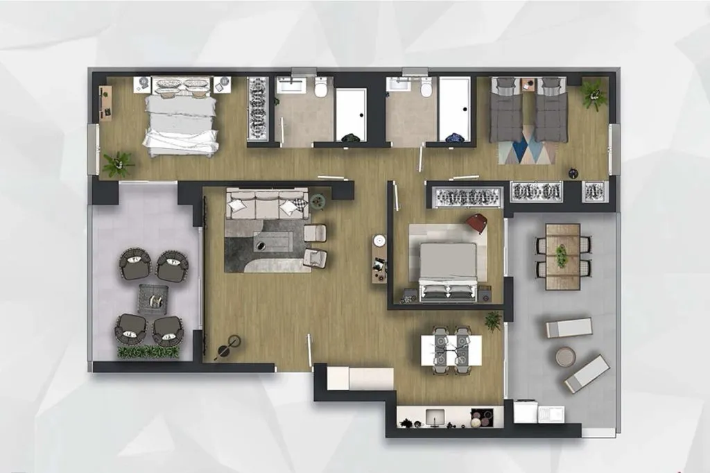 Во всех апартаментах установлена система предустановки кондиционирования воздуха. Ванные комнаты и кухни полностью оборудованы качественной мебелью и электротехникой.