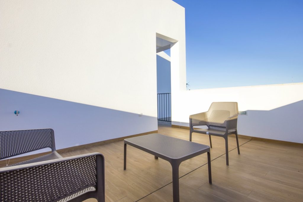 Каждая вилла состоит из 3 просторных спален и  3 ванных комнат, обеспечивая достаточно места для вас и вашей семьи. Дизайн этих вилл действительно впечатляет, с современной и стильной испанской эстетикой, которая обязательно произведет впечатление. Двухэтажный дизайн создает простор, а вместительная терраса идеально подходит для наслаждения потрясающими закатами.