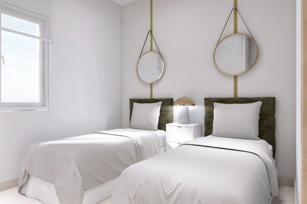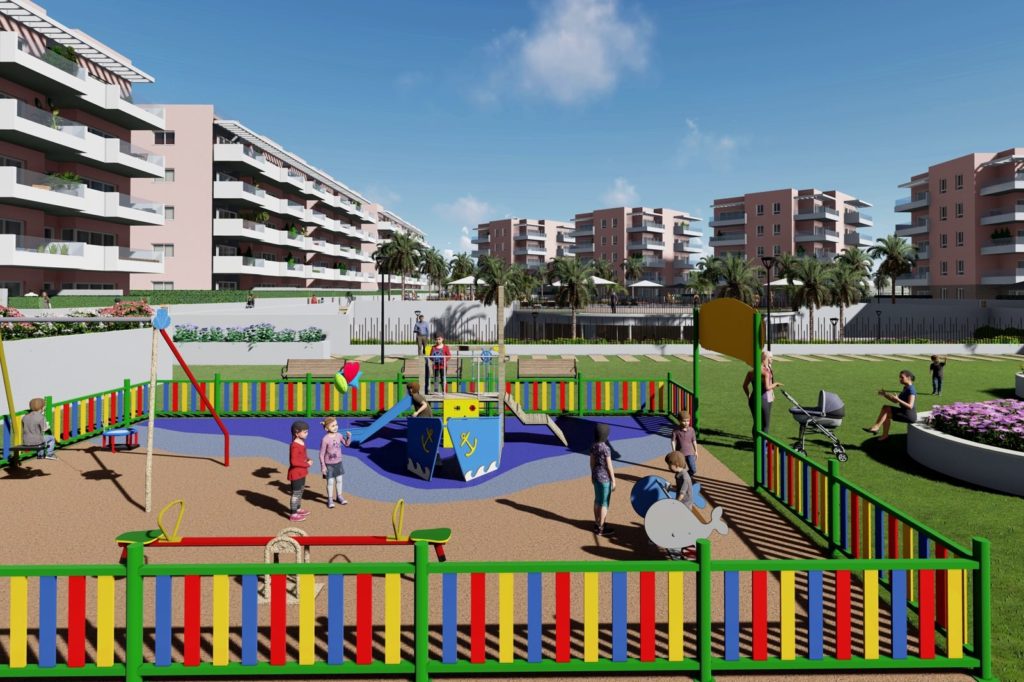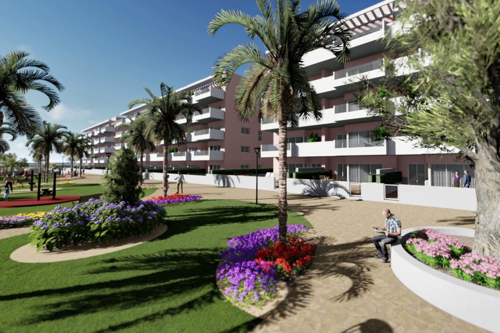 Урбанизация «OASIS LAGUNA» состоит из блоков в 3 этажа. Всего комплекс будет иметь 78 апартаментов с 2 или 3 спальнями и 2 ванными комнатами.