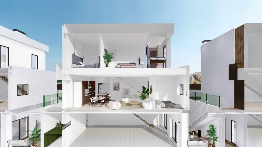Spain Realty Group представляет новый комплекс VENECIA V, состоящий из 10 современных вилл, расположенных в живописном районе города Полоп, в северной части провинции Аликанте. Виллы имеют 3 этажа общей площадью 307 м2 и расположены на участках от 385 до 550 м2. Состоят из просторной гостиной площадью более 60 м2, включая столовую и кухню, 3 спален и 3 ванных комнат. Дополнительные удобства включают: пейзажный бассейн с террасой, обеспечивающий комфорт и конфиденциальность, закрытый гараж с прямым доступом из дома на цокольном этаже. Каждая вилла VENECIA V оснащена солнечными батареями и полами с подогревом. Пляж и море находятся всего в 15 минутах езды на машине. Рядом вы найдете торговый центр и супермаркеты. Каждый уголок этого комплекса окружен потрясающими видами на горы и окрестности. Расслабьтесь под испанским солнцем у бассейна или позагорайте на собственной террасе.