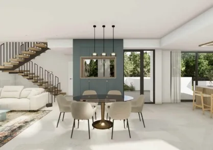 Spain Realty Group представляет новый комплекс VENECIA V, состоящий из 10 современных вилл, расположенных в живописном районе города Полоп, в северной части провинции Аликанте. Виллы имеют 3 этажа общей площадью 307 м2 и расположены на участках от 385 до 550 м2. Состоят из просторной гостиной площадью более 60 м2, включая столовую и кухню, 3 спален и 3 ванных комнат. Дополнительные удобства включают: пейзажный бассейн с террасой, обеспечивающий комфорт и конфиденциальность, закрытый гараж с прямым доступом из дома на цокольном этаже. Каждая вилла VENECIA V оснащена солнечными батареями и полами с подогревом. Пляж и море находятся всего в 15 минутах езды на машине. Рядом вы найдете торговый центр и супермаркеты. Каждый уголок этого комплекса окружен потрясающими видами на горы и окрестности. Расслабьтесь под испанским солнцем у бассейна или позагорайте на собственной террасе.
